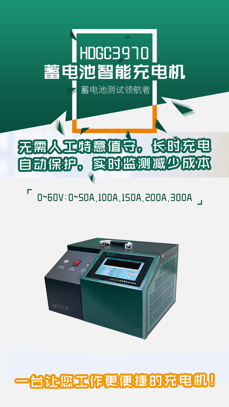 ? ? ? ?HDGC3970 48V蓄電池組充電機可對電池組進行大電流活化補充電,通過高頻充電機特性設置恒流、恒壓、涓流三階段充電模式對電池內部極柱鈍化進行有效活化充電,延長了電池的使用壽命,適用于各類蓄電池組運維維護。