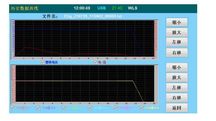 ● 具備曲線查看功能:通過數據管理界面的歷史數據曲線功能,可將內置的數據文件以圖表和波形圖的形式進行回看查詢。