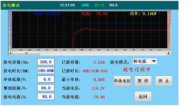 ? ● 放電可設定多個終止條件:包括終止電壓、放電電流、容量、放電時間其中任意一個測試條件達到后會自動停止放電,以及過電壓、過電流、過溫、數據存儲異常、電壓測試等多種測試故障報警顯示。