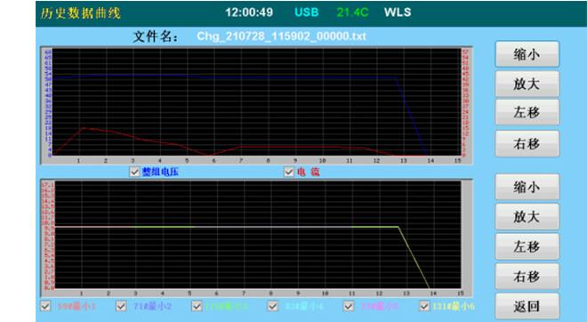 ? ● 具備曲線查看功能:通過數據管理界面的歷史數據曲線功能,可將內置的數據文件以圖表和波形圖的形式進行回看查詢。