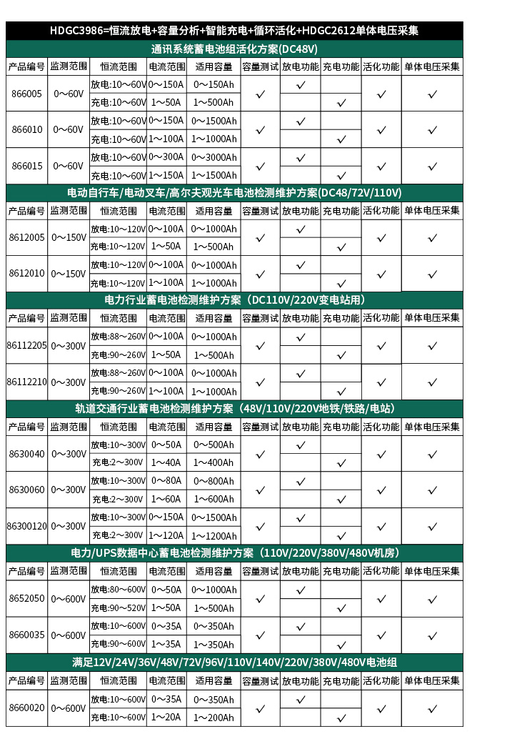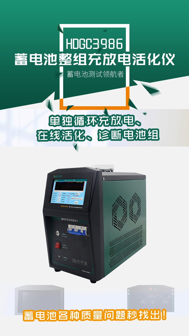? ? ? ?HDGC3986蓄電池整組充放電活化儀集蓄電池恒流放電、智能充電、活化、單體監測于一體。一機多用,減少企業成本,降低維護人員勞動強度,用于定期的電池組檢測及落后電池再生活化,為電池和UPS電源維護提供科學的檢測手段。用于電信、基站、電力等部門。根據需要進行深度放電,然后充電,使電池組隨時保持滿足狀態并延長電池壽命,是蓄電池維護工作的好助手。