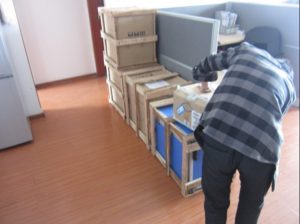 代發貨間以放滿今天需要發貨的設備,只有在找空位放置了。和往常一樣,已經裝訂了4個多小時。